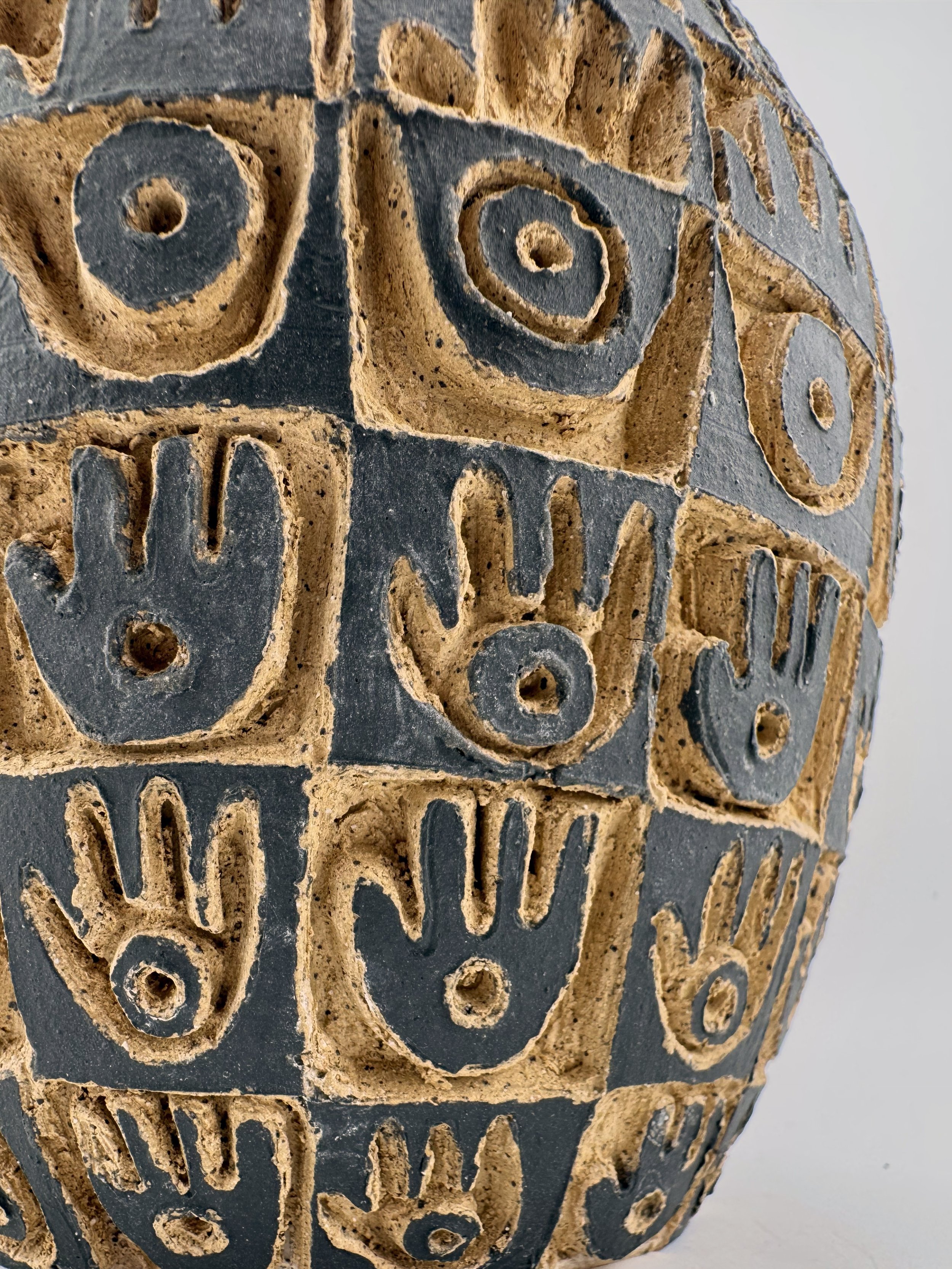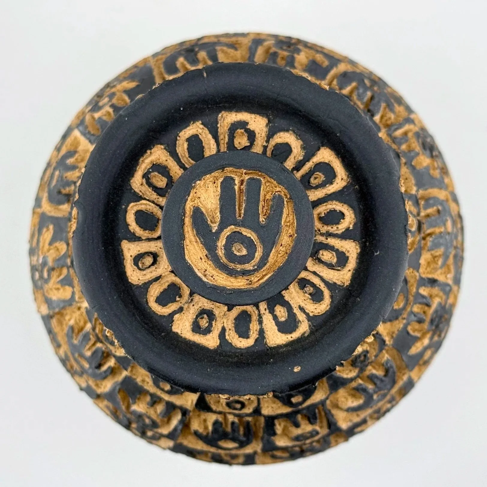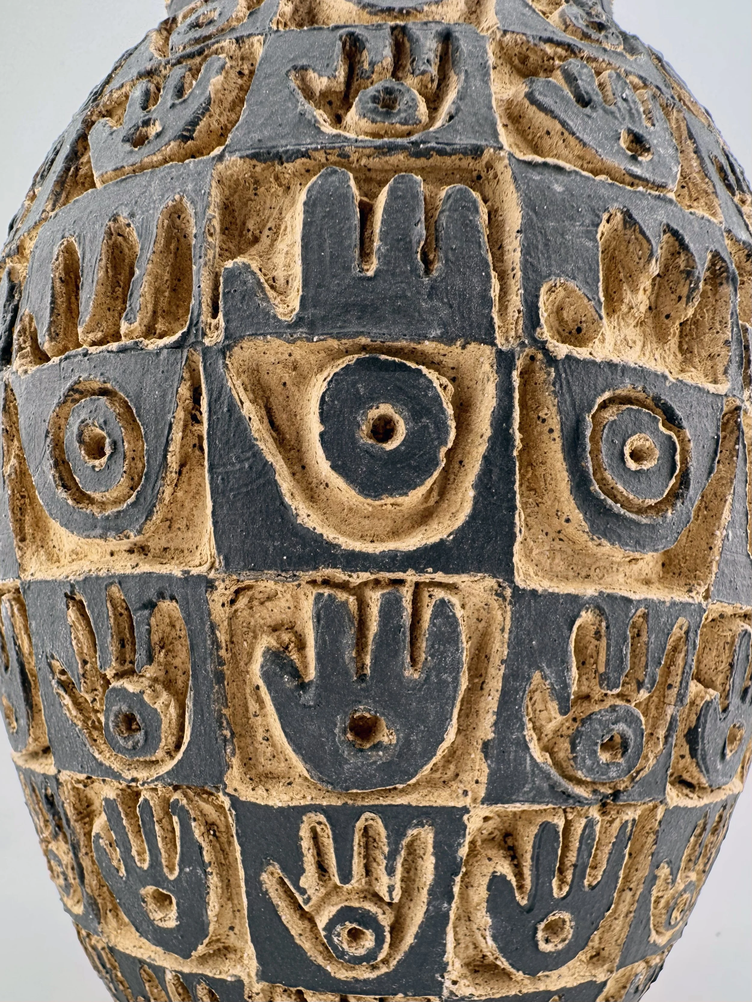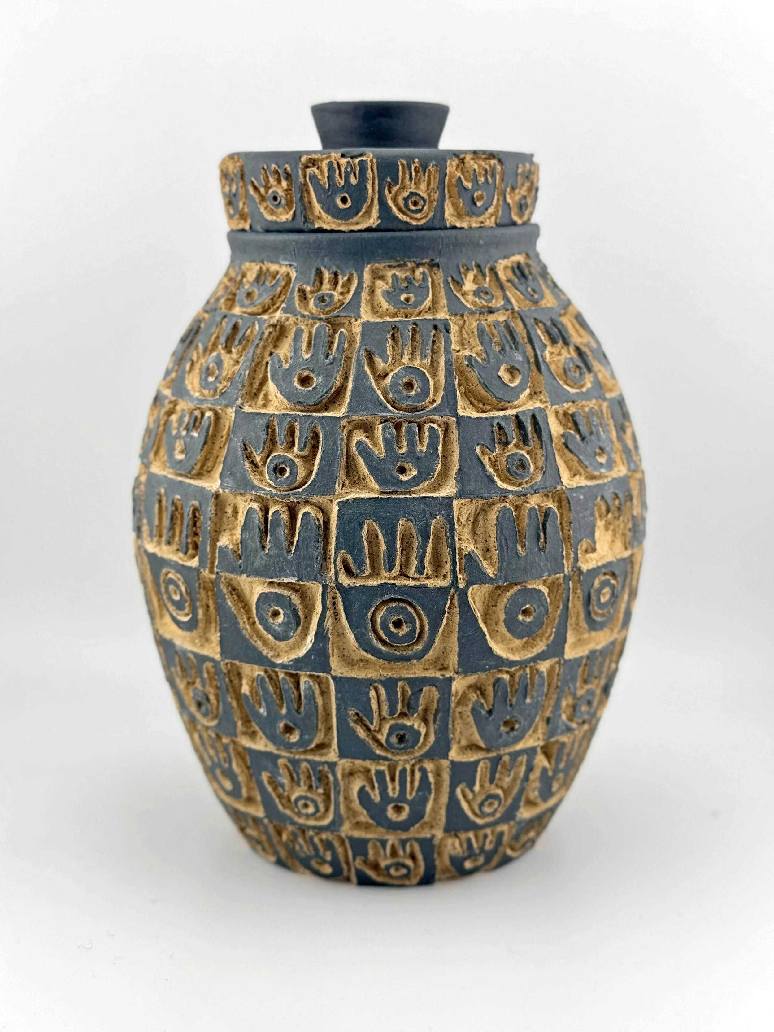 Lidded Vessels Categories: All Bowls Candlesticks Desert Judaica Lidded Vessels Pitchers Platters Vases All / Hamsa Jar